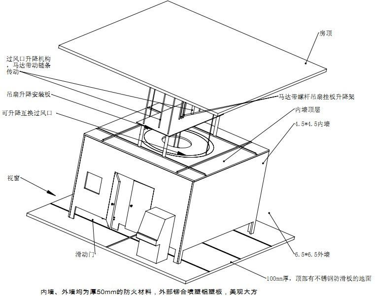 試驗(yàn)屏之外的頂板或任何會干擾氣流的凸梁都應(yīng)該在頂孔之上不小于1000mm的地方,即外屏